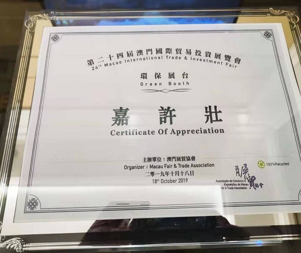 第二十四屆澳門國(guó)際貿(mào)易投資展覽會(huì)獲獎(jiǎng)