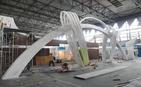 主要材料:木板、鋼管、方鋼、軟膜天花、燈片、有機片、景觀燈、環(huán)保地毯,寫真、播音軟貼。
