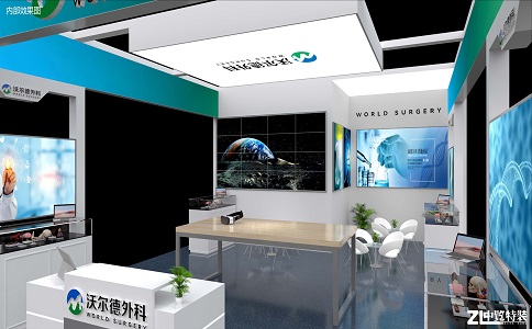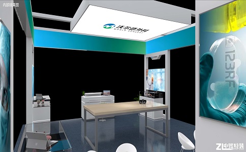 主要材料:木板、方鋼地臺、LED軟膜燈箱、亞克力片、LED燈、玻璃展柜、考漆。