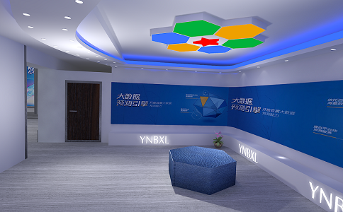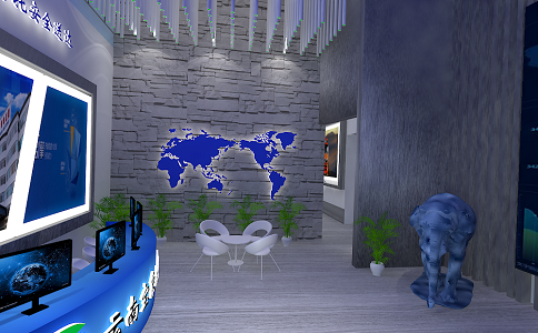 一、大數(shù)據(jù)平臺(tái)展廳:展廳地面保留原來(lái)的地磚灰,為呼應(yīng)地面用采用不銹鋼拉絲方鋼做LED屏臺(tái)架與襯托地面和諧統(tǒng)一起到拉伸空間。設(shè)計(jì)師考慮到空間和功能主要用原建筑主體結(jié)構(gòu)特點(diǎn)弧形形狀來(lái)增加立面,建成弧形高清全彩LED液晶顯示屏基座。有了64平方高清全彩弧形LED屏。用弧形LED主要是觀看視角好,科技性強(qiáng),凸顯出展廳莊重大氣。大廳正中創(chuàng)意設(shè)計(jì)了以正方體多點(diǎn)圓球圓柱組成的立體造型(含義:科技信息網(wǎng)絡(luò)數(shù)據(jù)流暢流通)。頂部彩用了藍(lán)色波浪形切割造型形增加空間的流動(dòng)性;提升展廳信息科技感。頂部用多根玻璃鋼樹(shù)脂管做創(chuàng)意燈組成寶象物流集團(tuán)的LOGO。既拉伸了空間也突出了集團(tuán)的文化。頂部左右兩分別用LOGO色綠色和藍(lán)色的玻璃鋼樹(shù)脂管燈增加展廳文化感提升展廳的照明度。大廳進(jìn)門(mén)背景用大燈箱圖展現(xiàn)集團(tuán)的相關(guān)信息,也用發(fā)光字把集團(tuán)的企業(yè)文化口號(hào)展現(xiàn)。兩端分別用兩頭大象陳列意義以集團(tuán)的名稱(chēng)不謀而合人和財(cái)旺 “出將入相”吉祥如意等。展廳兩端分別是兩組操控操作臺(tái)系統(tǒng)。