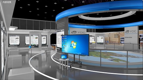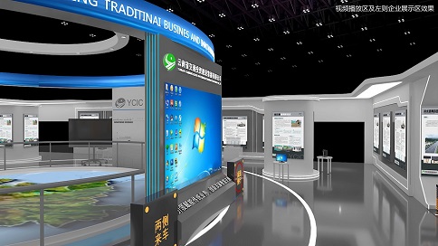 設計構思:展廳創(chuàng)想遵循“未來交通、科技創(chuàng)新、環(huán)保安全”的原則,力求做到體現(xiàn)國際化、現(xiàn)代化為主創(chuàng)思路。借助原有建筑及沙盤創(chuàng)意設計使整個展廳 “協(xié)調統(tǒng)一、厚重大氣”。整體特裝以爵士白、火山灰、科技藍為主色調。時空隧道、高速公路概念創(chuàng)意緊貼云南交投集團的定位。突出展廳科技感現(xiàn)代化,展廳采用LED視頻播放、超薄燈箱展板、多媒體電視、發(fā)光字、企業(yè)展板展示、實物展示、立體雕刻字等高新科技技術應用相結合。