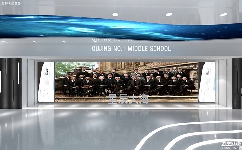 整個(gè)“曲靖市第一中學(xué)科技 館”使用了爨字體,體現(xiàn)出曲 靖特有的爨文化,整面形象背景 墻是曲靖第一中學(xué)的“一”字。 兩側(cè)樹(shù)枝形狀的為簽名墻, 融入了曲一中的“根文化”,體現(xiàn)了 曲靖一中“根深蒂固,才能源遠(yuǎn) 流長(zhǎng)”的理念。