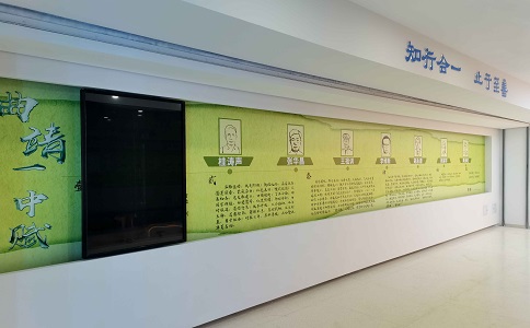 進(jìn)門(mén)左手邊是一塊滑 軌屏,按由遠(yuǎn)到近的方式 介紹了整個(gè)曲一中110年的校史。